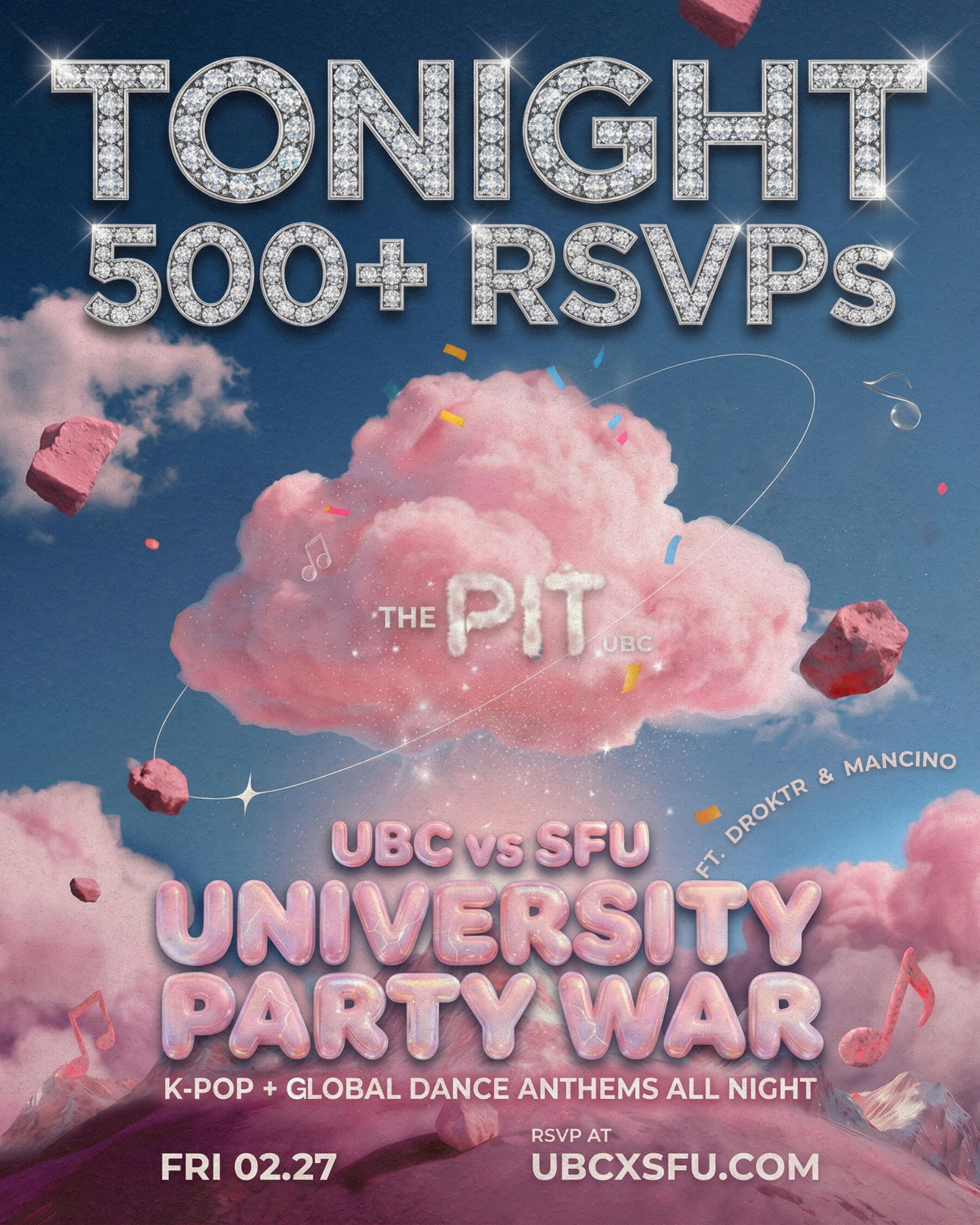 πͺ© UBC vs SFU: University Party War at PITπͺ©Our BIGGEST NIGHT and the official UBC PIT TAKEOVER - UBC vs SFU goes to war on the dancefloor with a full-send crowd, hands-up energy, and nonstop anthems.β‘ WHAT IT IS